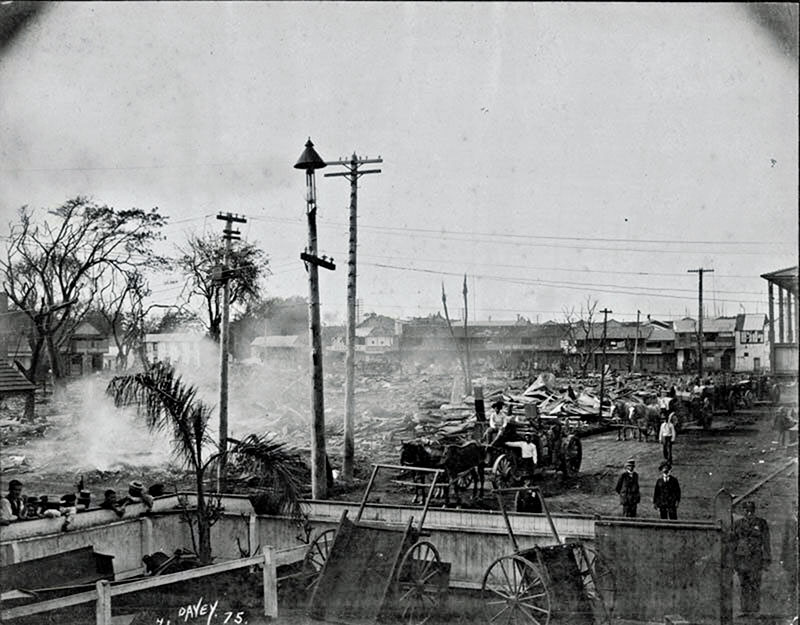 In 1900, the bubonic plague had broken out in Chinatown. City officials attempted to strategically burn part of the district to keep the disease under control — but the flames blazed out of control, leaving 6,000 men, women and children destitute.